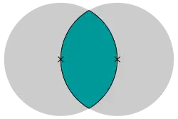 Os dois círculos se sobrepõem quando . Para suficientemente grande, a coordenada do centro da lente está entre as coordenadas dos dois centros do círculo: