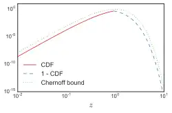 Na teoria das probabilidades, um limite de Chernoff é um limite superior exponencialmente decrescente para a cauda de uma variável aleatória, baseado em sua função geradora de momentos [en]. O mínimo de todos esses limites exponenciais forma o limite de Chernoff-Cramér, que pode decair mais rapidamente que exponencialmente (por exemplo, subgaussiano [en]).[1][2] É particularmente útil para somas de variáveis aleatórias independentes, como somas de variáveis de Bernoulli.[3][4]