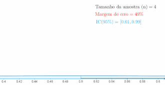 O raio do intervalo de confiança é . Logo, a margem de erro é .[15][16]