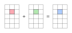 A adição e subtração de matrizes exigem matrizes de um tamanho consistente, e são calculadas entrada por entrada. A soma e a diferença de duas matrizes m × n são:[40]