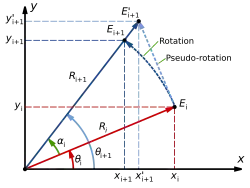 Em duas dimensões, a rotação pode ser definida por um único ângulo, . Por convenção, ângulos positivos representam rotação dos vetores no sentido horário, ou dos eixos coordenados no sentido anti-horário [Ref. 2][Ref. 1] [Nota 1]. O eixo de rotação nesse caso (o eixo Z) reside fora do espaço em consideração.