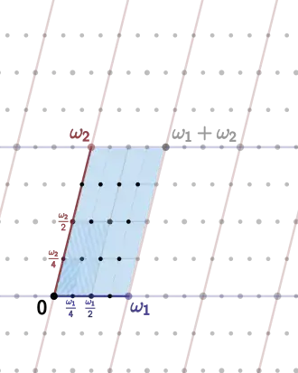 De forma mais geral, considere o reticulado , um grupo aditivo no plano complexo, gerado por . Então definimos a função de Weierstrass da variável em da seguinte forma: