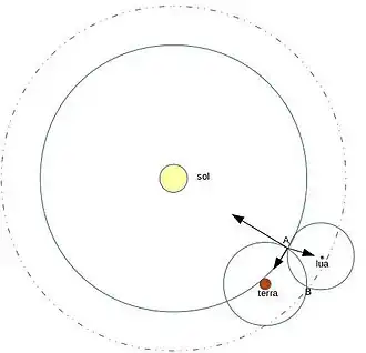 é o potencial gravitacional do Sol, é o da Terra e é o da Lua. Como a restrição são as superfícies equipotenciais, as funções são zero para os pontos em que os potenciais são e respectivamente.[8]