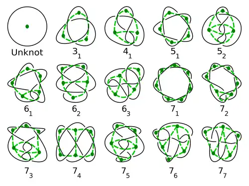 - ↑ Ramirez Alfonsin, J. L. (1999), «Spatial graphs and oriented matroids: the trefoil», Discrete and Computational Geometry, 22 (1): 149–158, doi:10.1007/PL00009446.