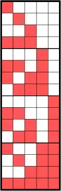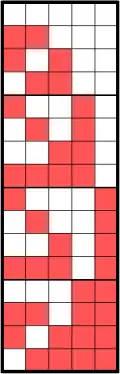 | Os primeiros 16 números do mal e de ódio em binário little-endian. Pode-se ver que ambas as sequências diferem apenas nos bits menos significativos, que formam a sequência de Thue-Morse para o mal, e sua negação para os números odiosos. Os outros bits formam os números pares. | |