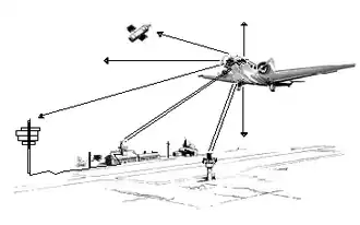 RNAV – Navegação de Área: A navegação convencional (com base em auxílios instalados no solo) tem a desvantagem de depender do alcance de tais auxílios e de a aeronave ter que seguir ao longo de caminhos traçados entre dois auxílios, o que, por vezes, não permite a navegação em linha reta do ponto de partida até o destino. A navegação de área faz uso de sistema a bordo da aeronave capaz de gerar a informação da posição e orientação da aeronave a partir de informações de satélites (GPS, por exemplo), sistema de referência inercial (IRS), auxílios VOR e DME instalados no solo ou a combinação deles. Isso torna possível voar em linha reta entre quaisquer dois pontos do globo, tornando a viagem mais rápida.