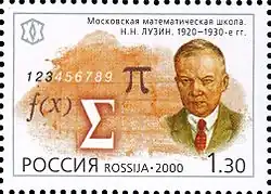 ![]() Selo russo de 2000 com a estampa de Nikolai Luzin | |
