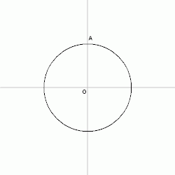 - Construa uma reta vertical passando pelo centro. Marque uma intersecção com o círculo como ponto A.