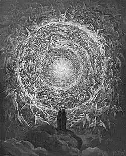 Outra crença atribuída a Pitágoras foi a da "harmonia das esferas",[58] que sustentava que os planetas e estrelas se movem de acordo com equações matemáticas, que correspondem a notas musicais e, portanto, produzem uma sinfonia inaudível.[58] Segundo Porfírio, Pitágoras ensinou que as sete Musas eram na verdade os sete planetas cantando juntos.[59] Em seu diálogo filosófico Protréptico, Aristóteles diz por seu duplo literário: