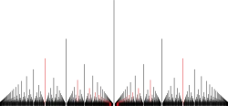 Se o pomar é projetado em relação à origem sobre o plano x + y = 1 (ou, equivalentemente, desenhado em perspectiva por um observador situado na origem) as copas das árvores formam um gráfico da função de Thomae. O ponto (m, n, 1) é projetado em