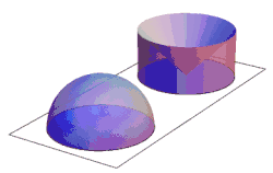 Note que a clepsidra será intersectada pelo plano , e a secção transversal será um círculo de raio . A área da secção da pode ser obtida por .