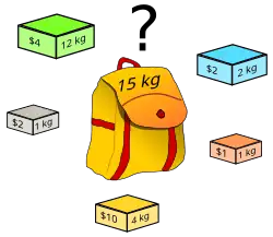 O problema da mochila (em inglês, Knapsack problem) é um problema de optimização combinatória. O nome dá-se devido ao modelo de uma situação em que é necessário preencher uma mochila com objetos de diferentes pesos e valores. O objetivo é que se preencha a mochila com o maior valor possível, não ultrapassando o peso máximo.[1]