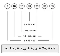 A soma dos termos dos extremos é igual à soma dos termos equidistantes deles