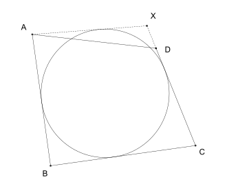 Um quadrilátero só é circunscritível a uma circunferência se a soma de quaisquer dois lados opostos é igual a soma dos outros dois lados opostos.