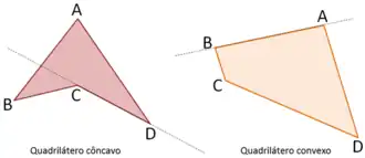 Uma outra forma de definir quadriláteros convexos e côncavos é a seguinte: