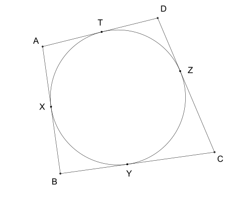 Portanto, podemos afirmar que, se num quadrilátero convexo a soma de dois lados opostos é igual à soma dos outros dois, então o quadrilátero é circunscritível a uma circunferência.