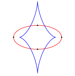 Em uma elipse com o eixo maior 2a e o eixo menor 2b, os vértices no eixo principal têm o menor raio de curvatura de qualquer ponto, R = b2/a ; e os vértices no eixo menor têm o maior raio de curvatura de qualquer ponto, R = a2/b .