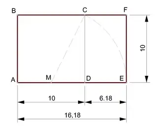 - O retângulo interno de vértices CDEF também é um retângulo de ouro (proporcional),