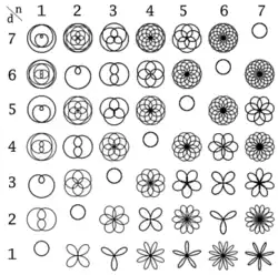 Onde a representa o comprimento das pétalas e tem apenas o efeito de realizar uma rotação global sobre a figura. Com exceção da similaridade, as curvas podem ser reduzidas à família: