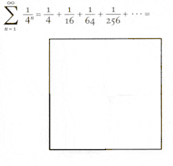 O diagrama de sua prova geométrica, semelhante ao diagrama ao lado, mostra uma série geométrica bidimensional. A primeira dimensão é horizontal, na linha inferior, representando a série geométrica com valor inicial e razão