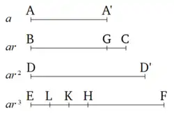 O Elementos de Euclides tem a distinção de ser o livro-texto matemático mais antigo do mundo usado continuamente, e inclui uma demonstração da soma de séries geométricas finitas no Livro IX, Proposição 35, ilustrado em uma figura adjacente.[18]