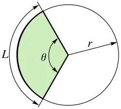 Um setor circular (símbolo: ⌔) é a parte de um círculo (uma região fechada delimitada por uma circunferência) delimitada por dois raios e um arco, sendo a área menor conhecida como setor menor e a maior como setor maior.[1] No diagrama, θ é o ângulo central, r o raio da circunferência e L é o comprimento do arco do setor menor.