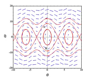 Assim, nos pontos próximos de o sistema é parecido a um oscilador harmônico simples, com órbitas elípticas no espaço de fase, que correspondem a oscilações harmônicas com frequência angular: