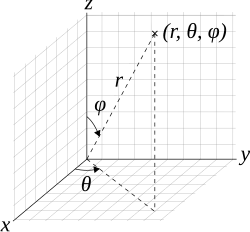 - ↑ W., Weisstein, Eric. «Spherical Coordinates». mathworld.wolfram.com (em inglês). Consultado em 22 de abril de 2017