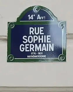 - ↑ Sophie Germain (em inglês) no Mathematics Genealogy Project
