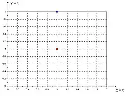 Colocando os valores obtidos nos respectivos planos (xy e uv), obtemos os gráficos das imagens ao lado.