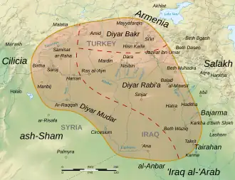 Região da Mesopotâmia Superior e suas subdivisões (Diar Baquir, Diar Mudar e Diar Rebia) durante o Califado Abássida