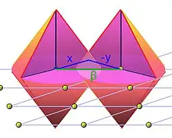 - ↑ Uma vez que o conjunto S é simétrico, o fato de ter um ponto que não é a origem implica S ter, ao menos, três pontos do reticulado: a origem e um par de pontos ±x, onde x ∈ L \ 0.