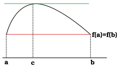 Suponha agora que . Então a função assume no interior do intervalo um máximo, um mínimo ou até os dois. Admita-se, sem perda de generalidade, que assume o valor máximo no ponto tal que