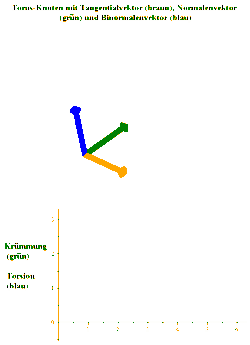 Significado geométrico: A torção mede a velocidade do vetor binormal. Quanto maior for, mais rápido o vetor binormal gira em torno do eixo dado pelo vetor tangente. Podemos visualizar o seu significado na ilustração gráfica presente neste artigo, na qual o vetor tangente está representado na cor marrom, o vetor normal, em verde, e o vetor binormal, em azul. No gráfico, o valor da torção é representado pela cor azul, e, em verde, o valor da curvatura.