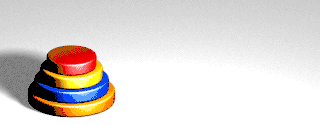 A torre de Hanói consiste em passar todos os discos de uma extremidade a outra sem que um disco maior fique em cima de um menor.