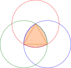 Alternativamente, constrói-se um triângulo equilátero T. Então desenha-se os arcos dos círculos, cada um centrado em um vértice de T e conectando os outros dois vértices.[4]