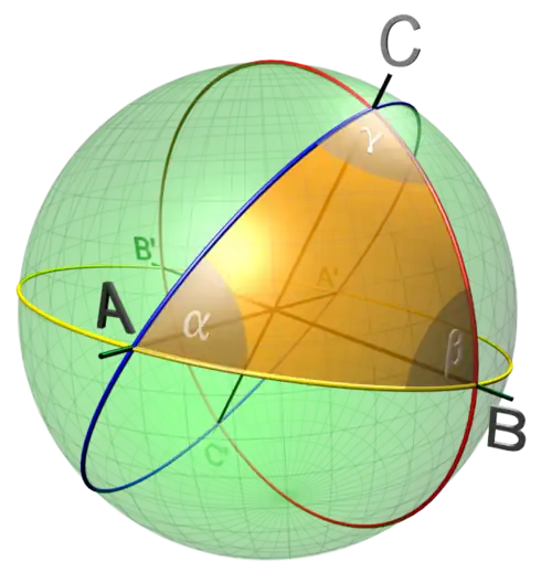 sendo a, b y c os lados; y A, B y C os ângulos do triângulo esférico.