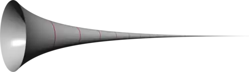 Um curioso resultado descoberto em 1641 por Torriceli foi sua prova de que se uma área infinita tal como a limitada pela hipérbole , uma ordenada , e o eixo das abscissas, é girada em torno do eixo , o volume do sólido gerado pode ser finito. A descoberta de que uma figura de dimensões infinitas pode ter grandeza finita envolveu outros grandes pensadores como Fermat, Oresme e Roberval.