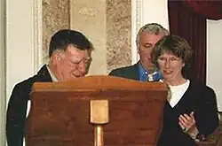 ![]() Ubiratan D'Ambrosio recebendo o Prêmio Kenneth O. May no Congresso Internacional na Cidade do México, em 2001. | |