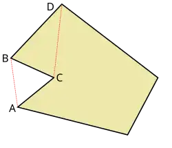 Um vértice principal xi de um polígono simples P é chamado de boca se a diagonal [x(i − 1), x(i + 1)] se encontra fora da região delimitada por P.