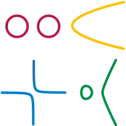 Quatro variedades a partir de curvas algébricas:  círculos,  parábola,  hipérbole,  cúbica.