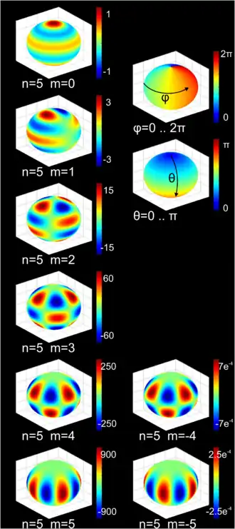 Gráfico de cores 3D dos harmônicos esféricos de grau n = 5
