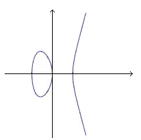no espaço afim de dimensão 2 (sobre um corpo de característica diferente de dois). Ela tem a equação polinomial homogênea cúbica associada: