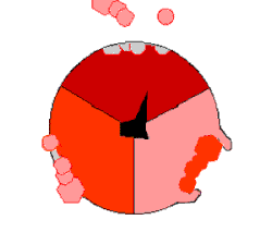 Mecanismo da ATP sintase. O ATP é representado a vermelho, o ADP e o fosfato a rosa, e a subunidade γ rotacional a preto