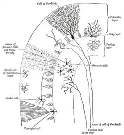 - ↑ Sotelo C, Rossi F (2013). «Purkinje Cell Migration and Differentiation». Handbook of the Cerebellum and Cerebellar Disorders: 147–178. ISBN 978-94-007-1332-1. doi:10.1007/978-94-007-1333-8_9
