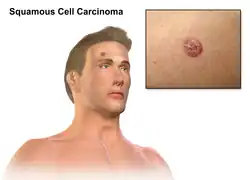 Carcinoma espinocelular ou carcinoma de células escamosas é um dos principais tipos de cancro da pele, a par do carcinoma basocelular e do melanoma.[10] Geralmente apresenta-se na forma de um nódulo duro na pele com superfície escamosa, embora possa também formar uma úlcera.[1] A doença desenvolve-se ao longo de meses.[4] O carcinoma espinocelular tem maior probabilidade de se espalhar para outras partes do corpo do que o carcinoma basocelular.[11]