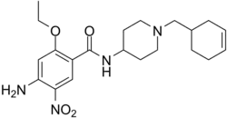 | Nome IUPAC | (RS)-4-amino-N-[1-(1-cyclohex-3-enylmethyl)-4-piperidyl]-2-ethoxy-5-nitro-benzamide | ||||||||