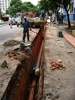 Em urbanismo é usado no contexto de encanamentos de abastecimento de por exemplo gás e de água potável às habitações, drenagem esgotos, e encanamentos para proteger fios elétricos de alta-tensão. Pode ser implantado tanto no subsolo quanto no térreo (piso).