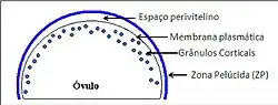 A membrana plasmática dos óvulos de todos os mamíferos é completamente envolvida pela zona pelúcida (ZP) (figura 1). Vários eventos são mediados por essa matriz extracelular: 1) reconhecimento espécie-específico e ligação dos espermatozoides; 2) indução da reação acrossômica; 3) bloqueio da polispermia; 4) proteção do embrião da fertilização até a implantação.
