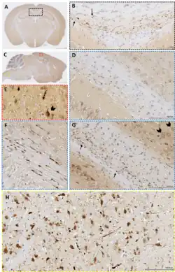 - ↑ a b Blumbergs PC, Scott G, Manavis J, Wainwright H, Simpson DA, McLean AJ (agosto 1995). «Topography of axonal injury as defined by amyloid precursor protein and the sector scoring method in mild and severe closed head injury». Journal of Neurotrauma. 12 (4): 565–72. PMID 8683607. doi:10.1089/neu.1995.12.565